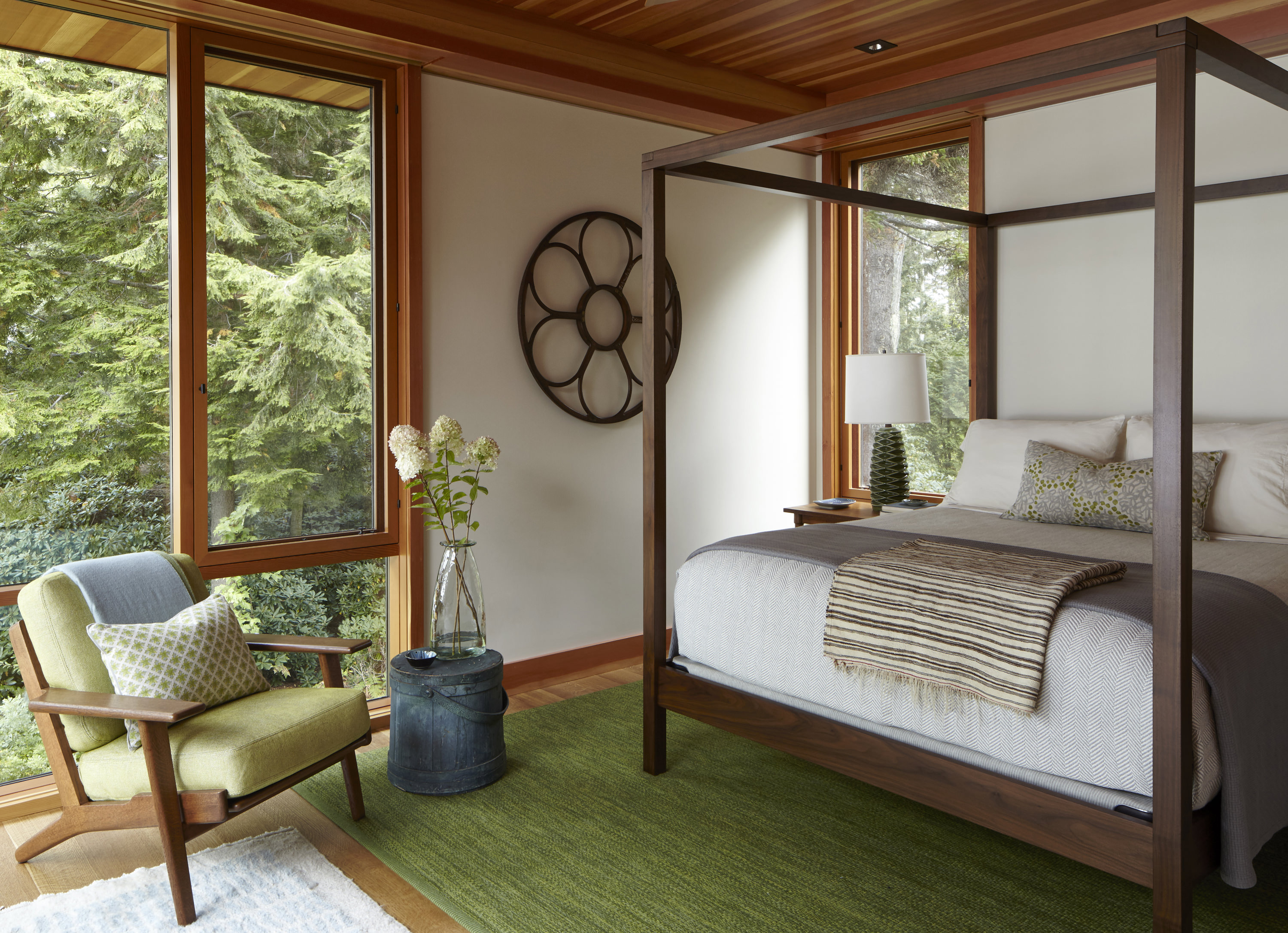 A key function of the Lake House’s architecture is its ability to accommodate two people or twenty with equal comfort and grace. This flexibility is achieved through a tripartite plan that demarcates three separate zones. The first is the “core” space: the kitchen, informal dining area and master suite. The second is a private guest wing for visiting family and friends. The third is a formal dining room and sweeping great room for gathering and entertaining.
